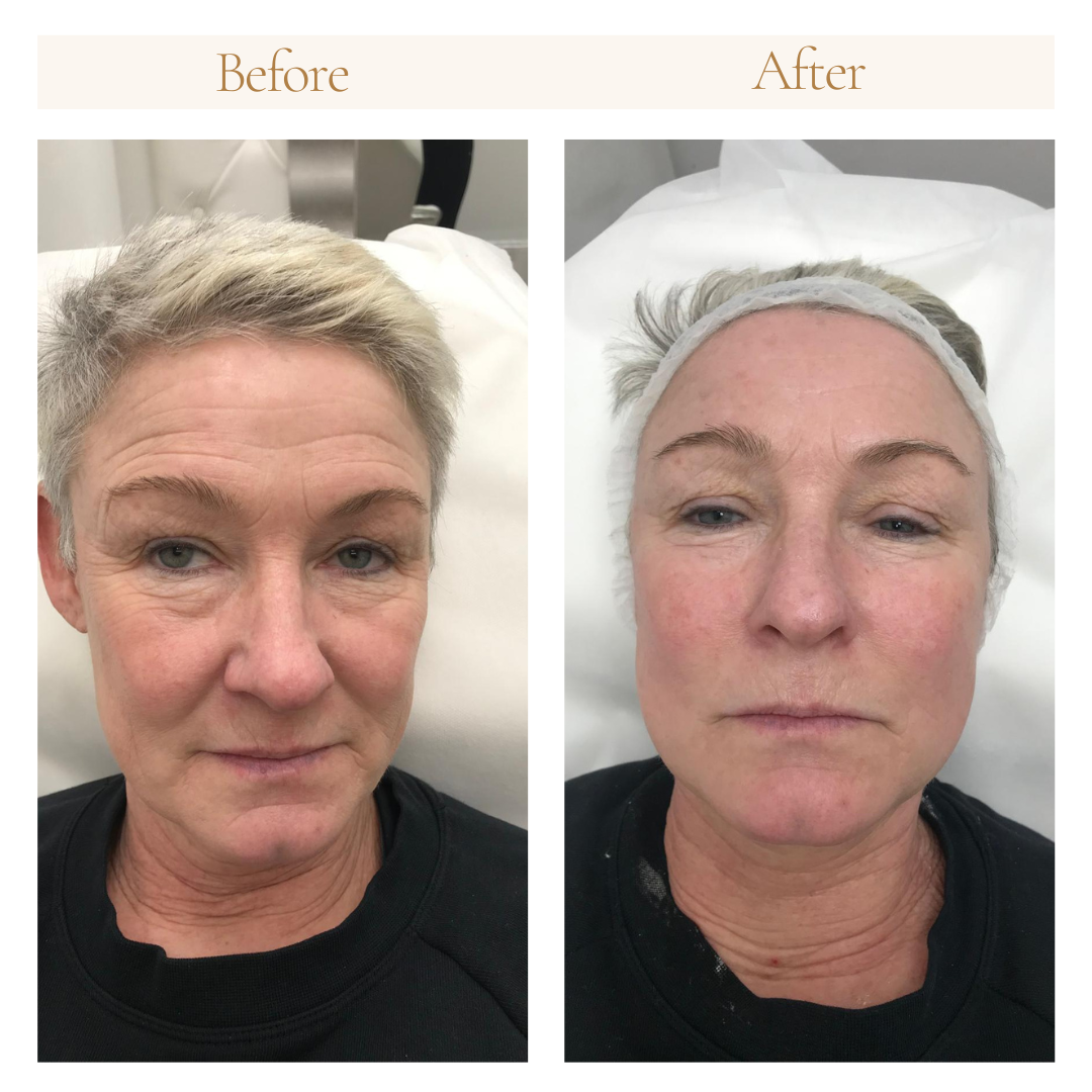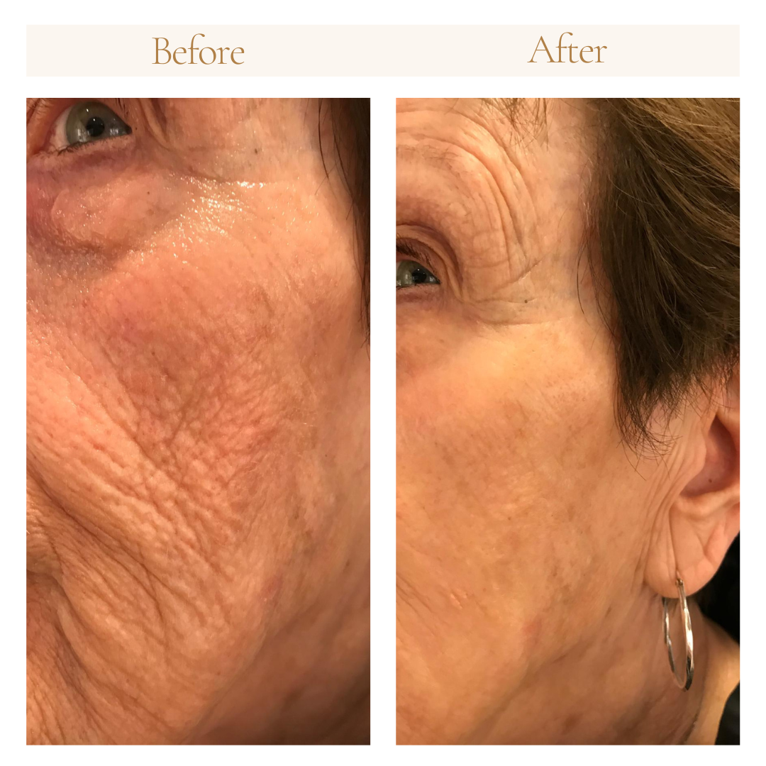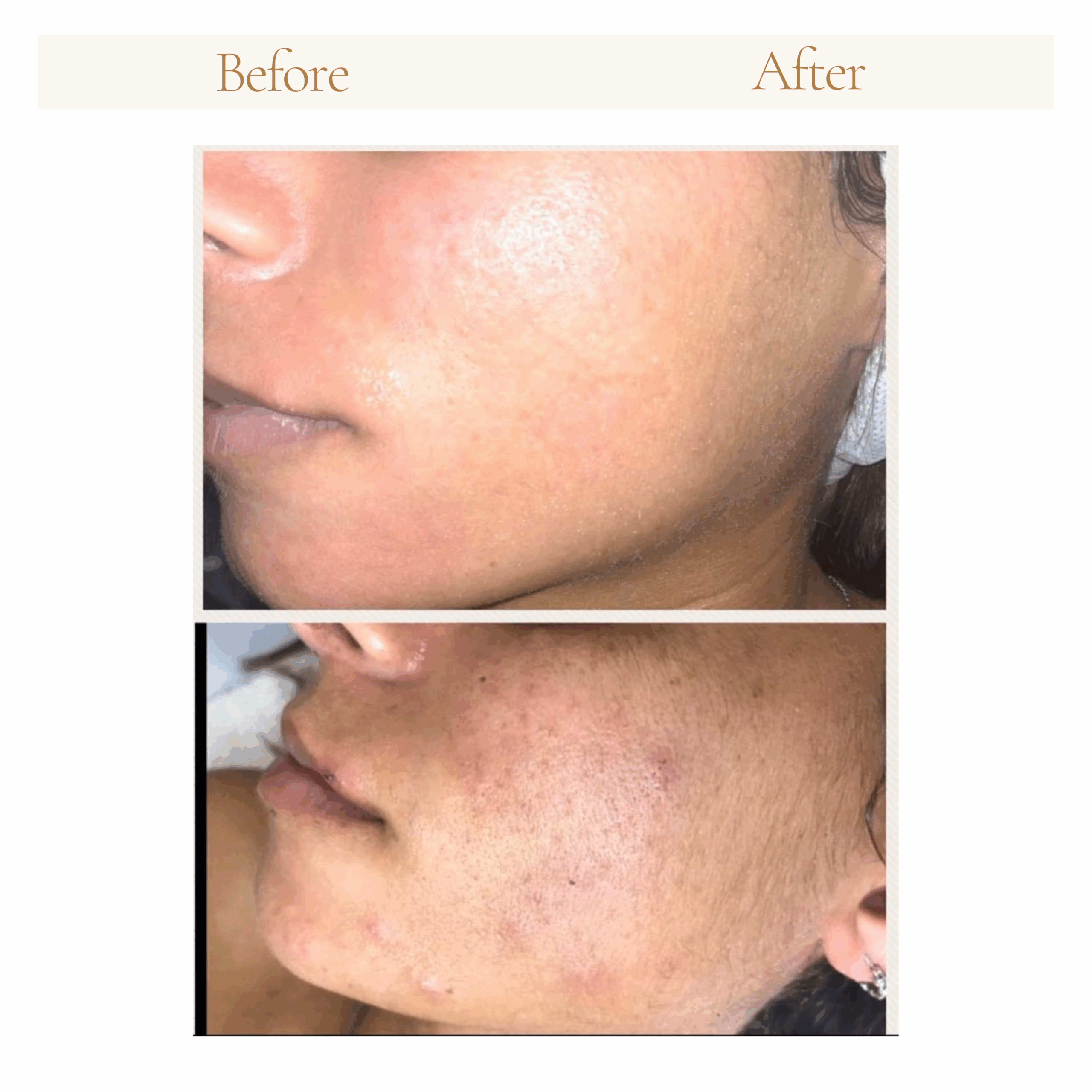 Because this treatment stimulates your skin’s natural collagen production, improvements continue for up to 90 days after each session. While long-term results build gradually, you’ll notice visible firmness, smoothness, and glow after just your first visit. For best results, we recommend maintaining your skincare routine at home and committing to at least 4 monthly facial sessions to deeply restore and support your skin’s transformation.
