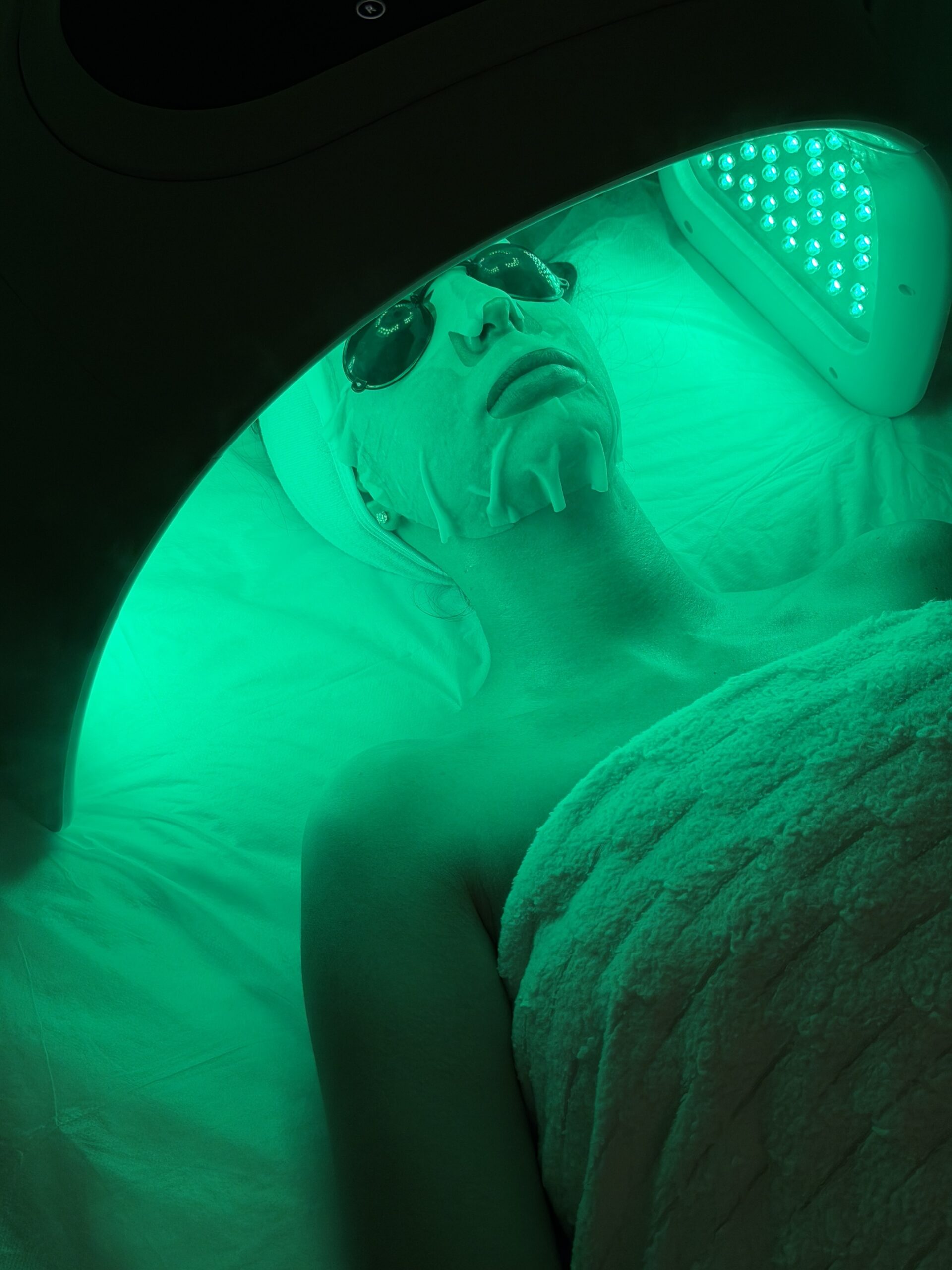 Gentle LED light is used to support calm, balance, and overall skin wellness following the procedure.